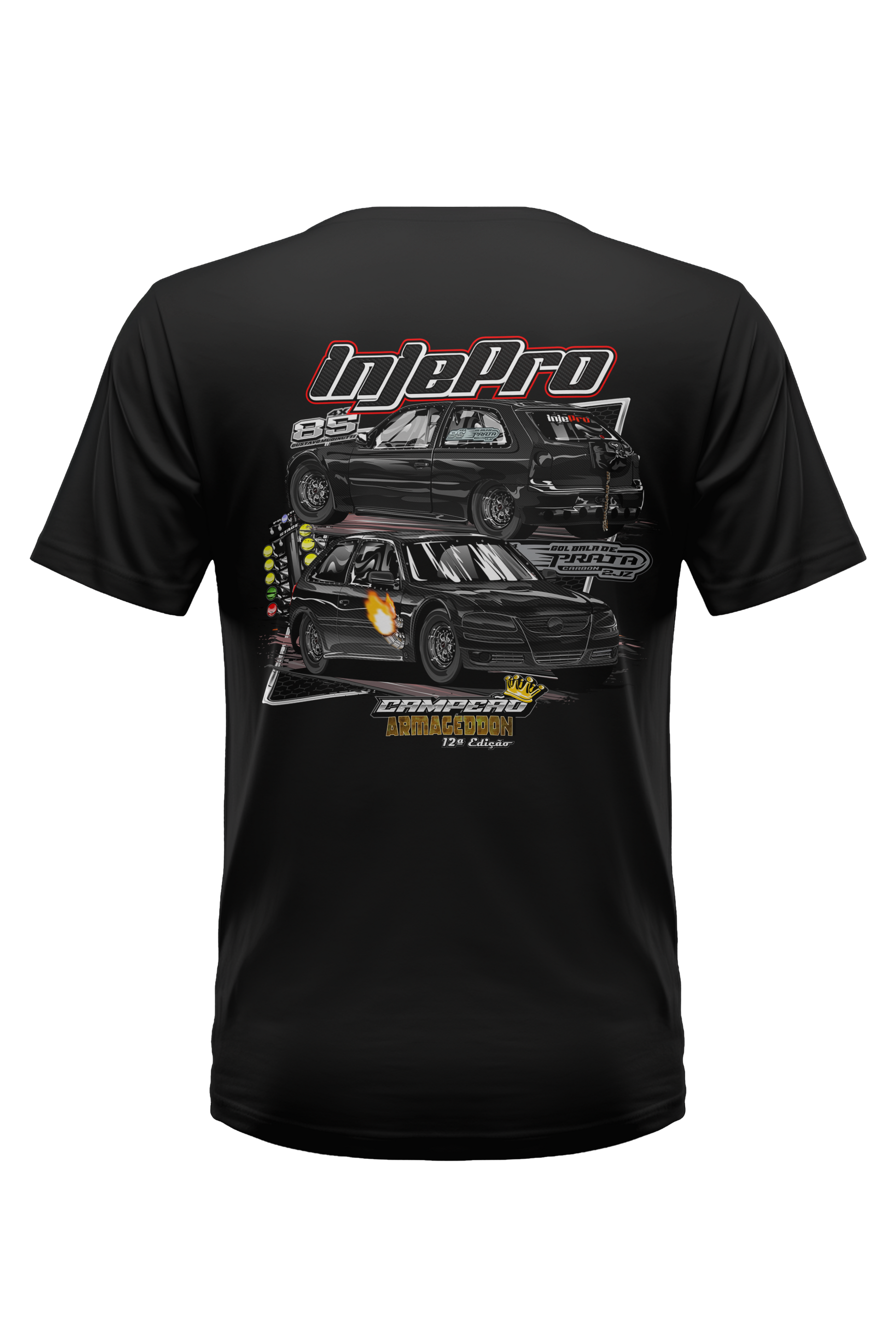 A Camiseta Bala de Prata homenageia uma verdadeira lenda das pistas. Com visual impactante, apresenta o icônico carro “Bala de Prata” em destaque, além do título de campeão do 12ª ARMAGEDDON. Uma peça feita para quem respira velocidade e potência.Camiseta 100% algodão